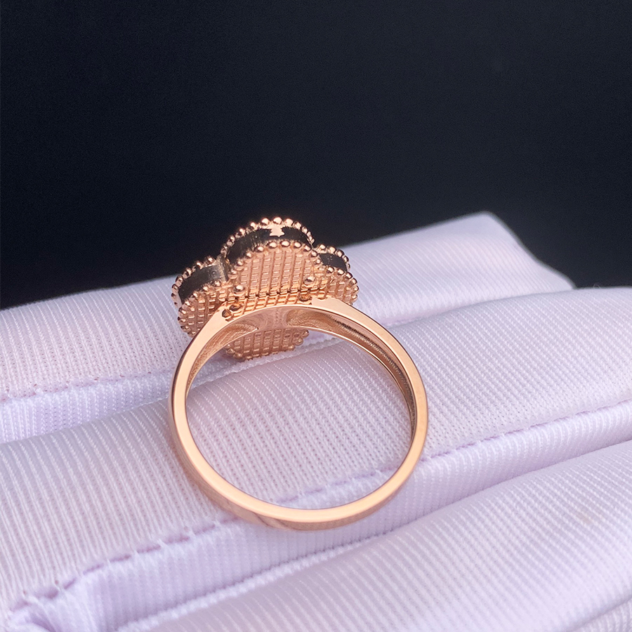 Nhẫn Nữ Cỏ Bốn Lá Vintage Alhambra 1 Diamond 18K Onyx – Yellow Gold tại Bemiie Jewelry